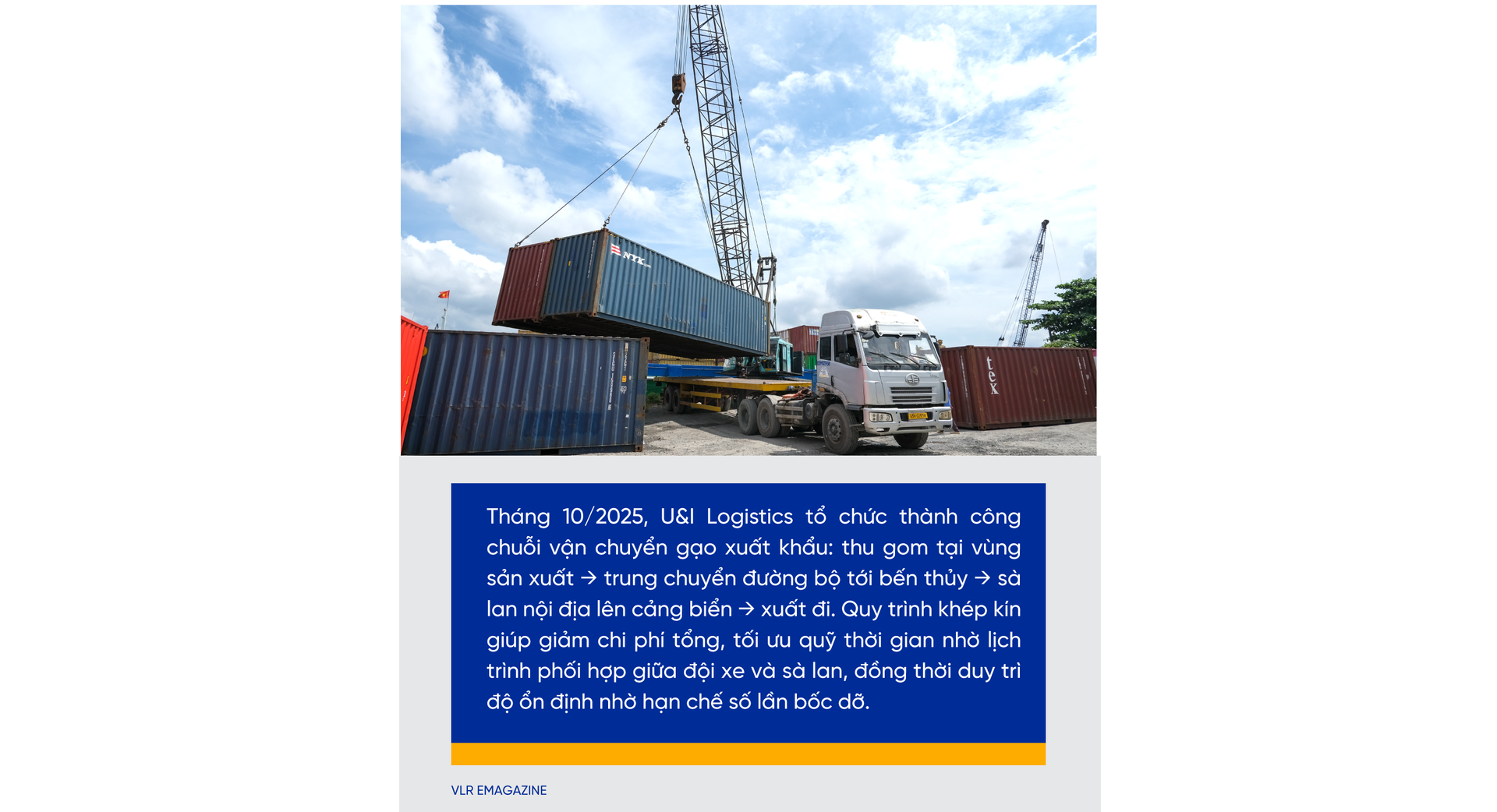 Với kinh nghiệm hơn 20 năm đồng hành cùng nông sản Việt, U&I Logistics không chỉ “chở hàng” mà còn “chở trách nhiệm”: tối ưu kế hoạch vận tải theo mùa vụ, kiểm soát chất lượng trong suốt hành trình, chuẩn hóa chứng từ để khách hàng đi thẳng các thị trường khó tính theo tiêu chuẩn xanh của các FTA.
