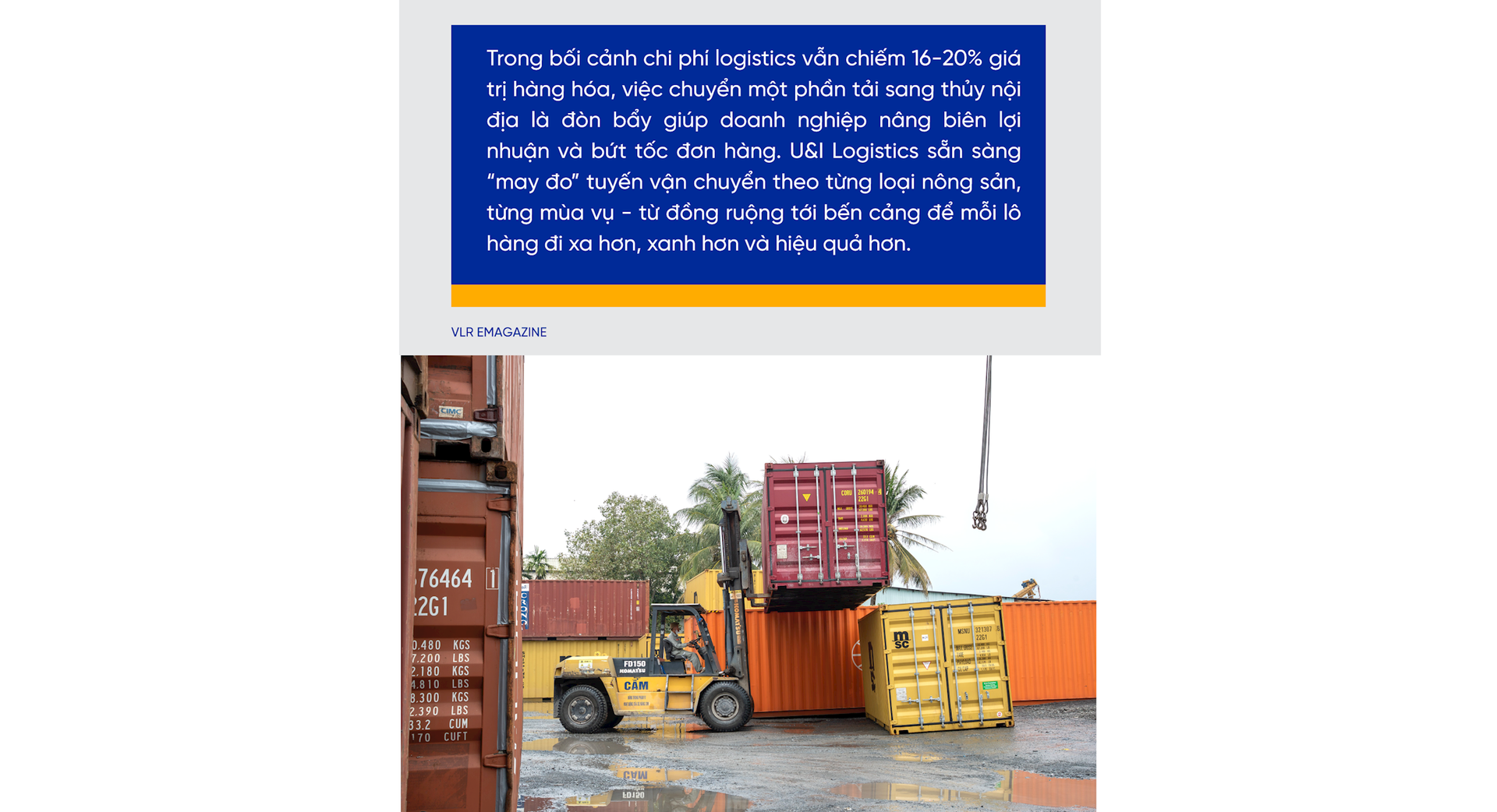 U&I Logistics thiết kế lộ trình door-waterway-port-door theo nguyên tắc “đúng phương thức cho đúng chặng”: