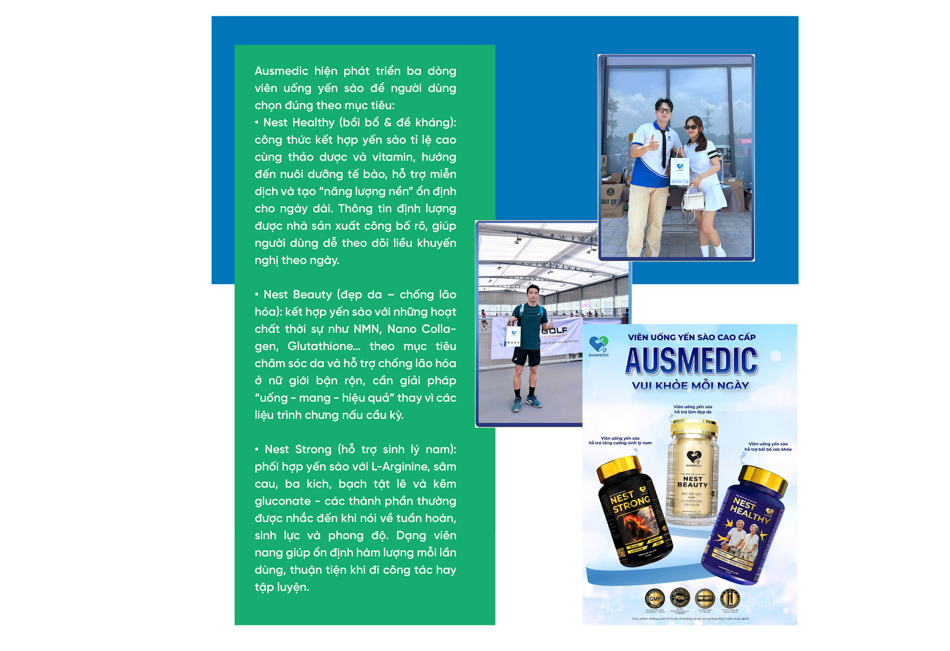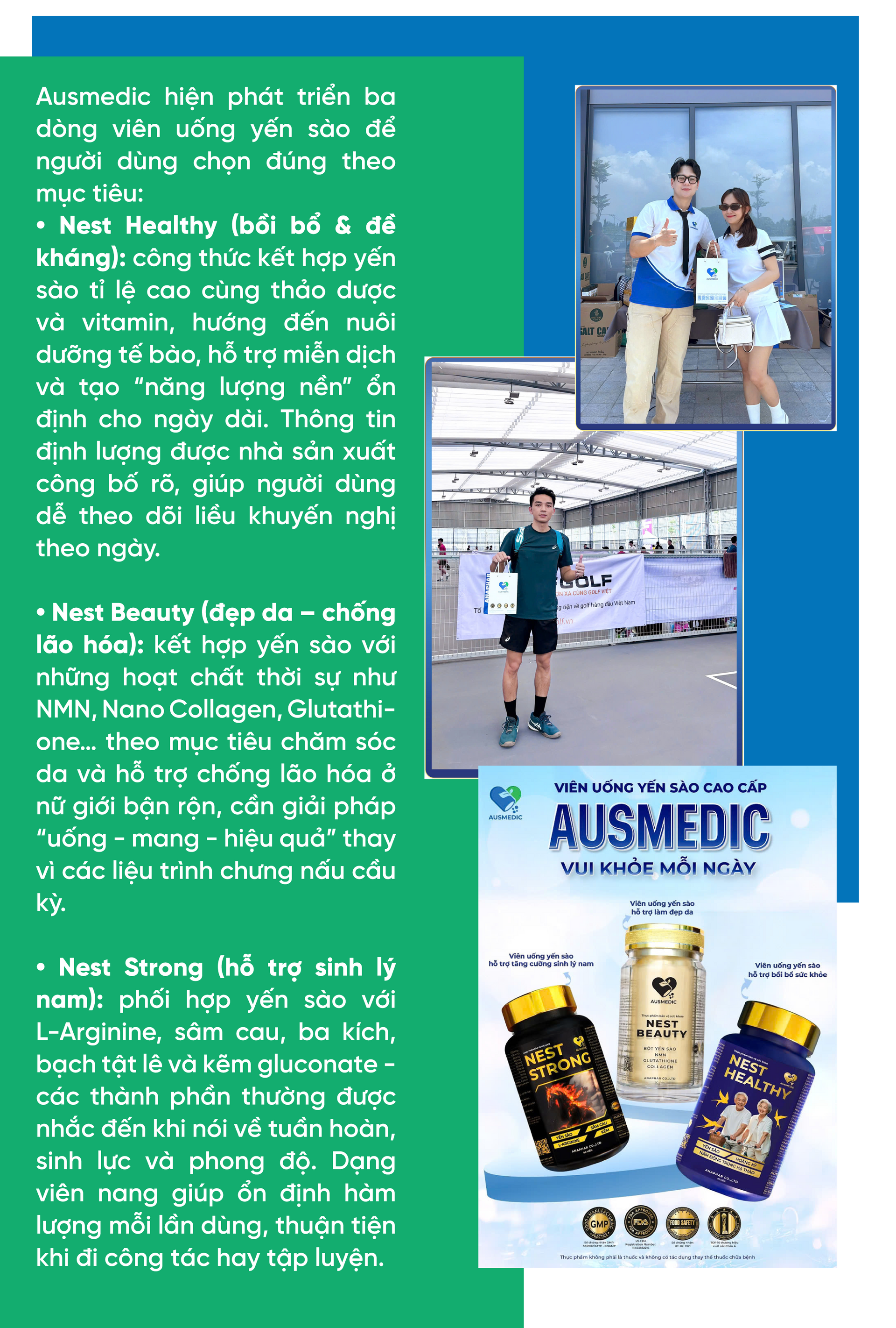 Viên uống yến sào Ausmedic là câu trả lời cho bài toán cân bằng giữa giá trị truyền thống và chuẩn mực hiện đại. Bằng công nghệ viên nang chuẩn GMP, hồ sơ chất lượng rõ ràng, và hệ sản phẩm phân khúc theo nhu cầu, thương hiệu giúp người Việt dùng yến đúng - đủ - đều, giảm rào cản chế biến - bảo quản, đồng thời khẳng định tiêu chuẩn “năng lượng sạch” phù hợp nhịp sống đô thị và văn hóa vận động mới. Khi di sản được chuẩn hóa bằng khoa học và minh bạch, giá trị không chỉ giữ nguyên mà còn được nâng tầm để đi xa hơn, vững vàng hơn trên bản đồ thực phẩm chức năng cao cấp.