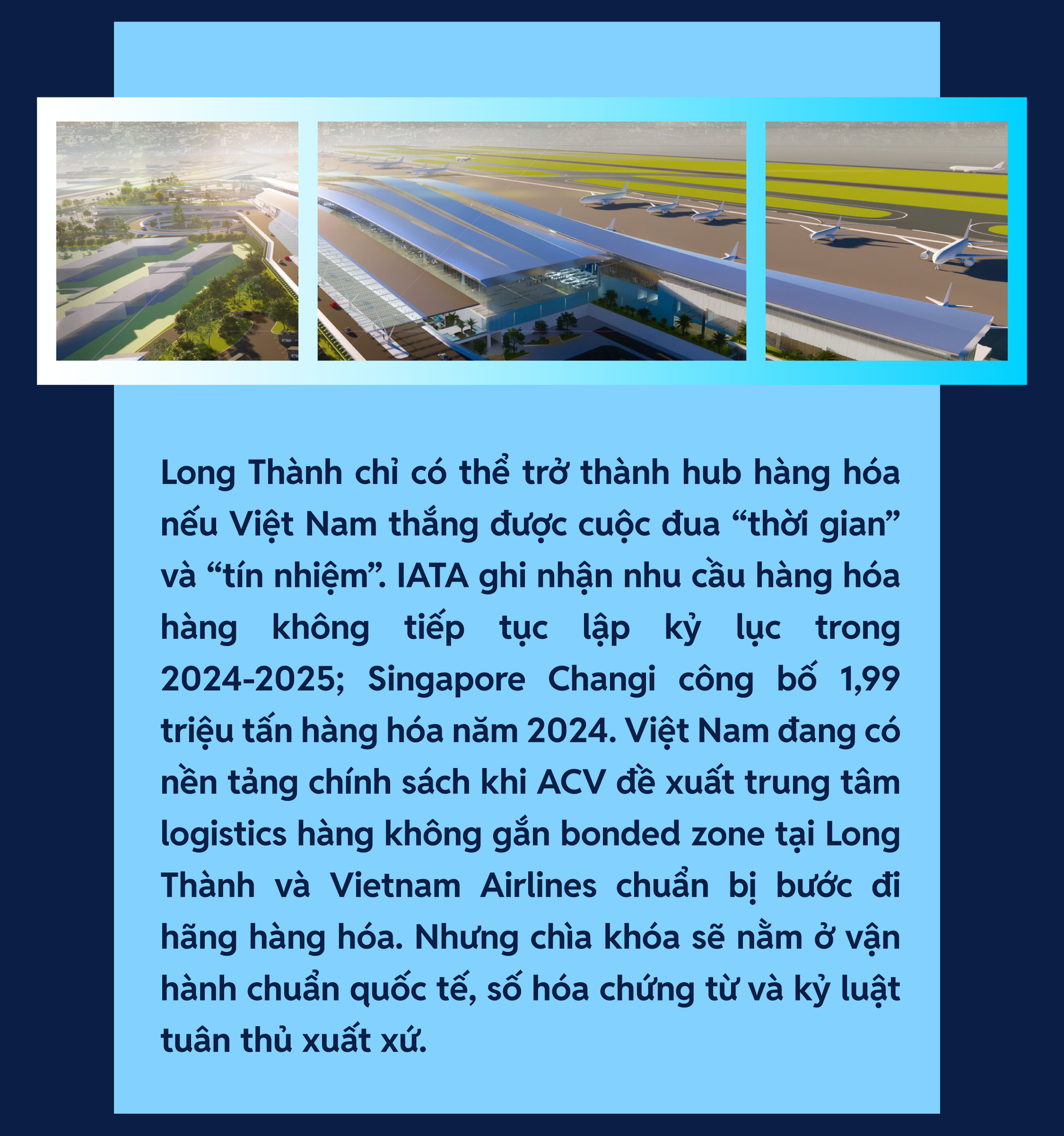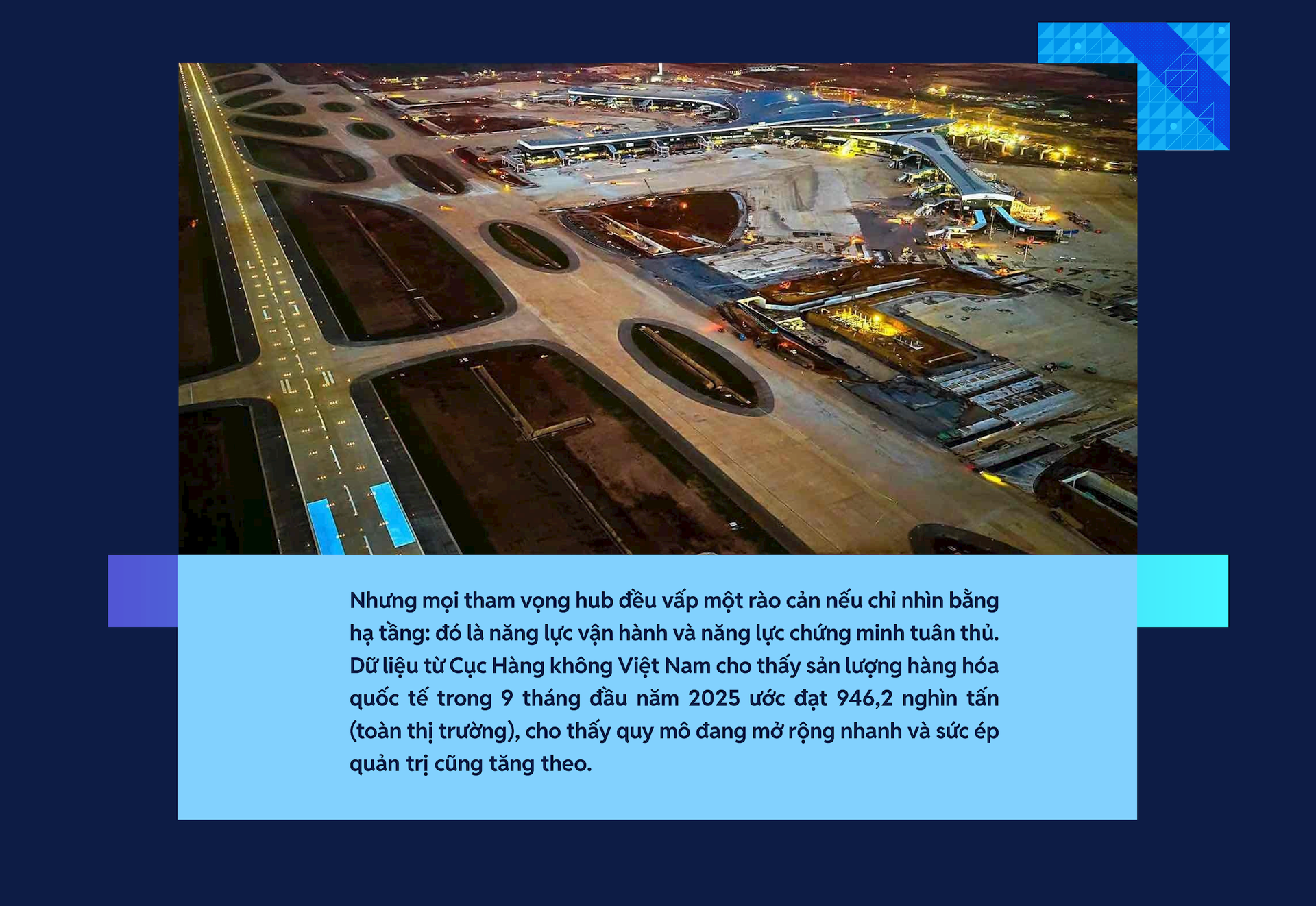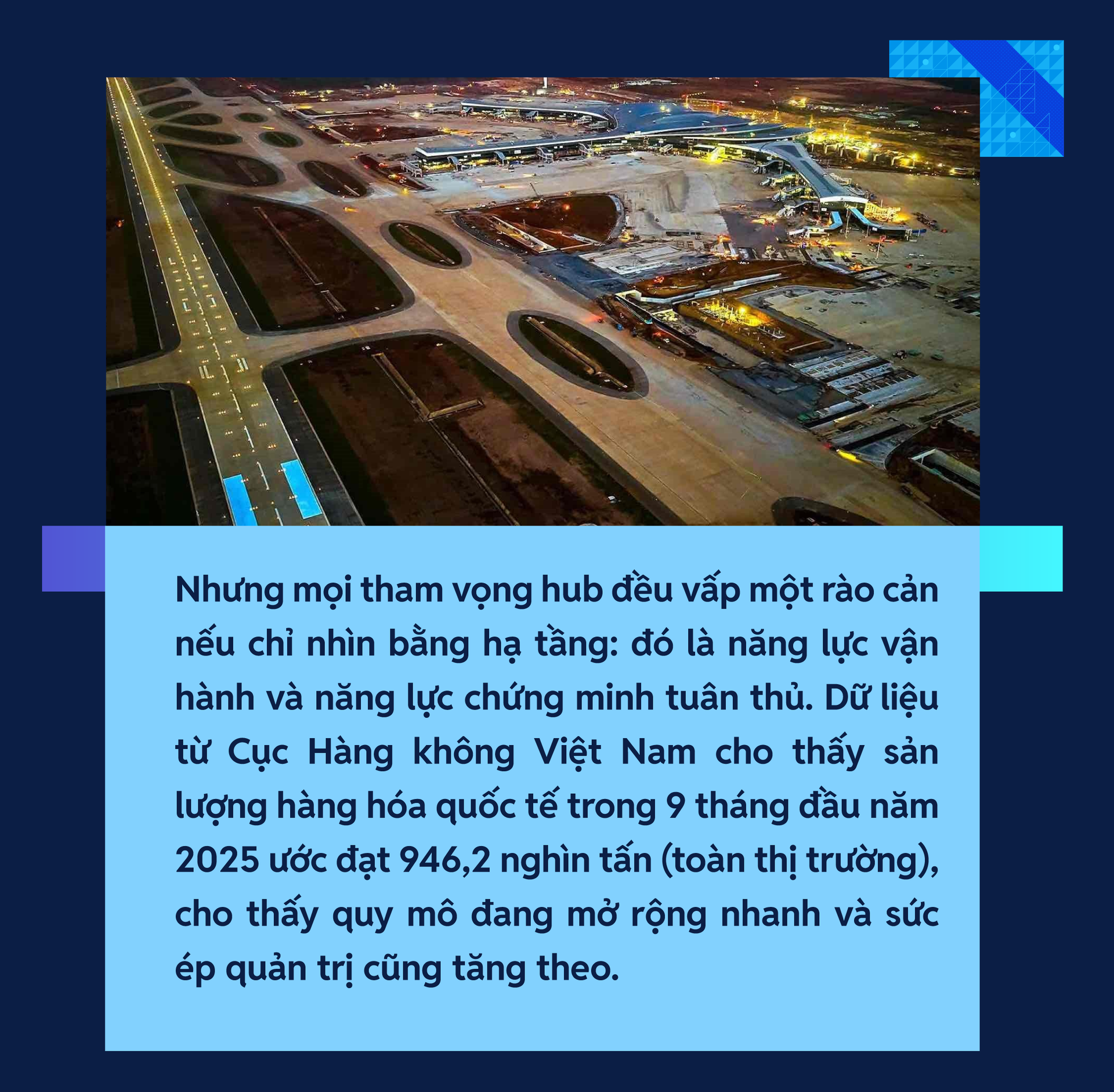 Một thực tế cho thấy: xây hub hàng hóa hôm nay là xây “hệ điều hành” cho thương mại. Long Thành cần được nhìn như một nền tảng kết nối giữa hàng hóa giá trị cao, thương mại điện tử xuyên biên giới và mạng vận tải quốc tế. Nhưng để nền tảng đó hoạt động, Việt Nam phải làm đồng thời hai việc tưởng như trái chiều: tăng tốc xử lý hàng và siết chặt chuẩn tuân thủ. Nếu làm được, Việt Nam không chỉ có một sân bay mới, mà có một lợi thế cạnh tranh mới.