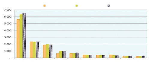 The production of exported goods of Vietnam in 2016 depends much on materials imported from foreign countries for local production cannot meet requirements from producers. Most of exported goods are outsourced. In Asian markets, China is Vietnam’s largest import market, with high turnover and growth to many technical materials. The chart clearly shows data of materials provided to Vietnam in 10 months of 3 consecutive years (Chart 4).