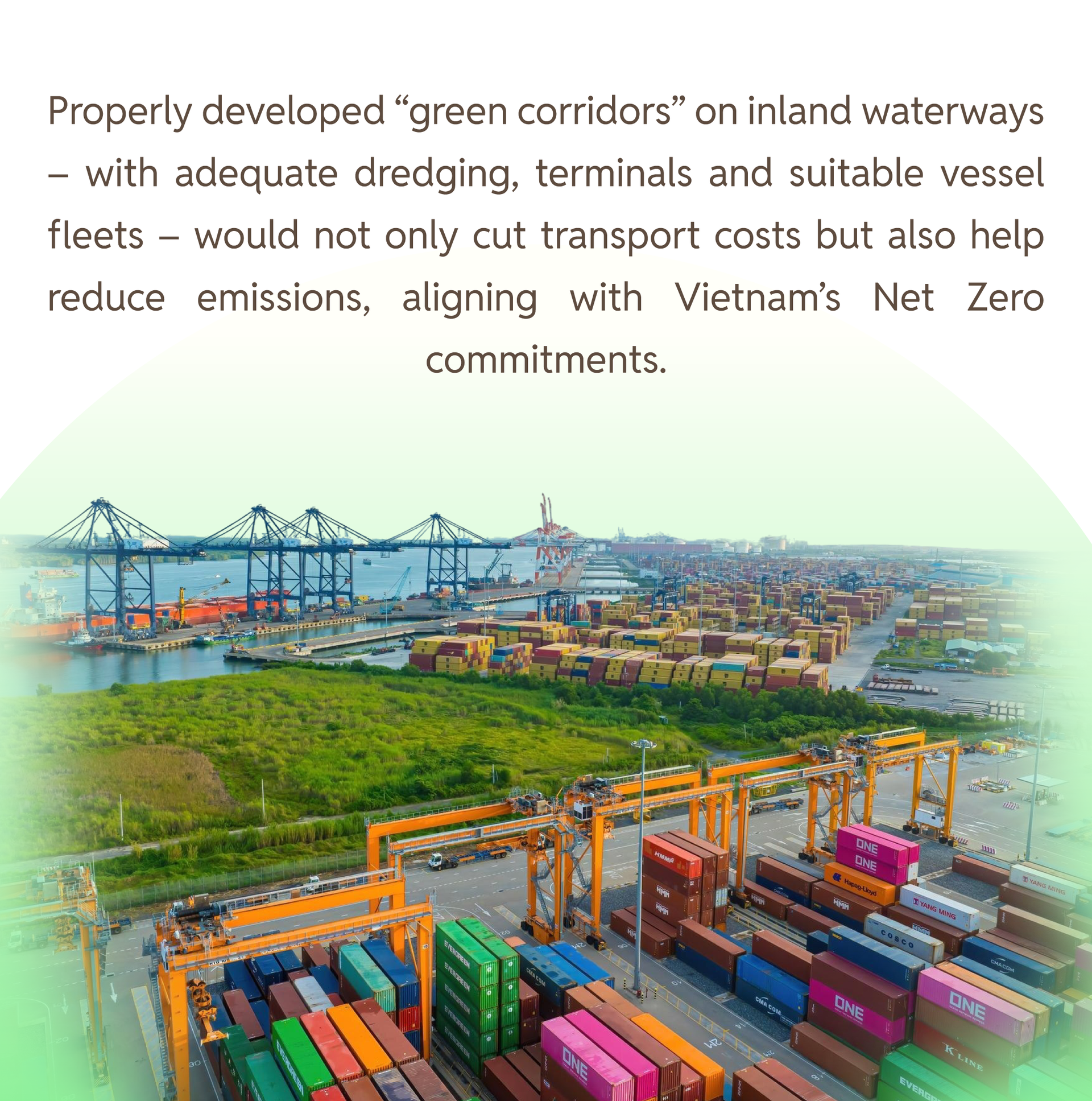 In this context, the concept of the port hinterland needs to shift decisively toward a multi-modal corridor model. Roads will remain the backbone, but their load should be shared by dedicated rail connections to ICDs and well-developed inland waterway routes along the Red–Thai Binh river system in the North and the Dong Nai, Saigon, Tien and Hau rivers in the South.