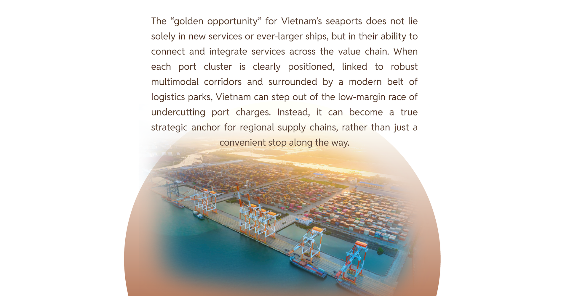 A clearer division of roles would help Vietnam avoid self-cannibalization, where local ports primarily compete against each other with fees and short-term incentives while the real market lies in regional supply chains linking ASEAN, the Indian Ocean and the Pacific. Having three port clusters in the Top-50 is only the starting point; the next step must be to “upgrade the role” of each cluster within the broader logistics landscape of ASEAN and the Indo-Pacific.