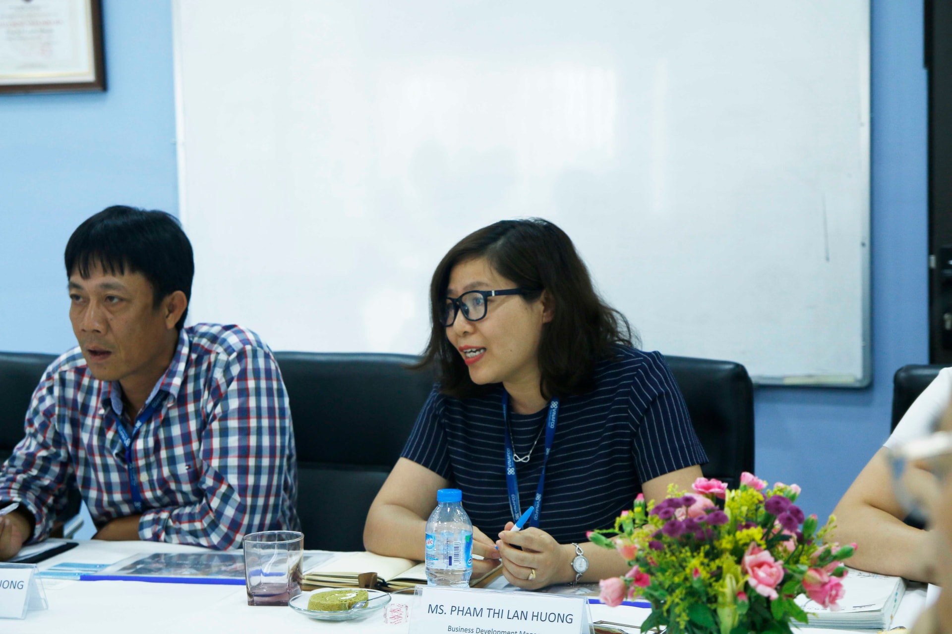 Bà Phạm Thị Lan Hương, Trưởng phòng kinh Công ty Vinafco trao đổi thông tin tại buổi gặp mặt
