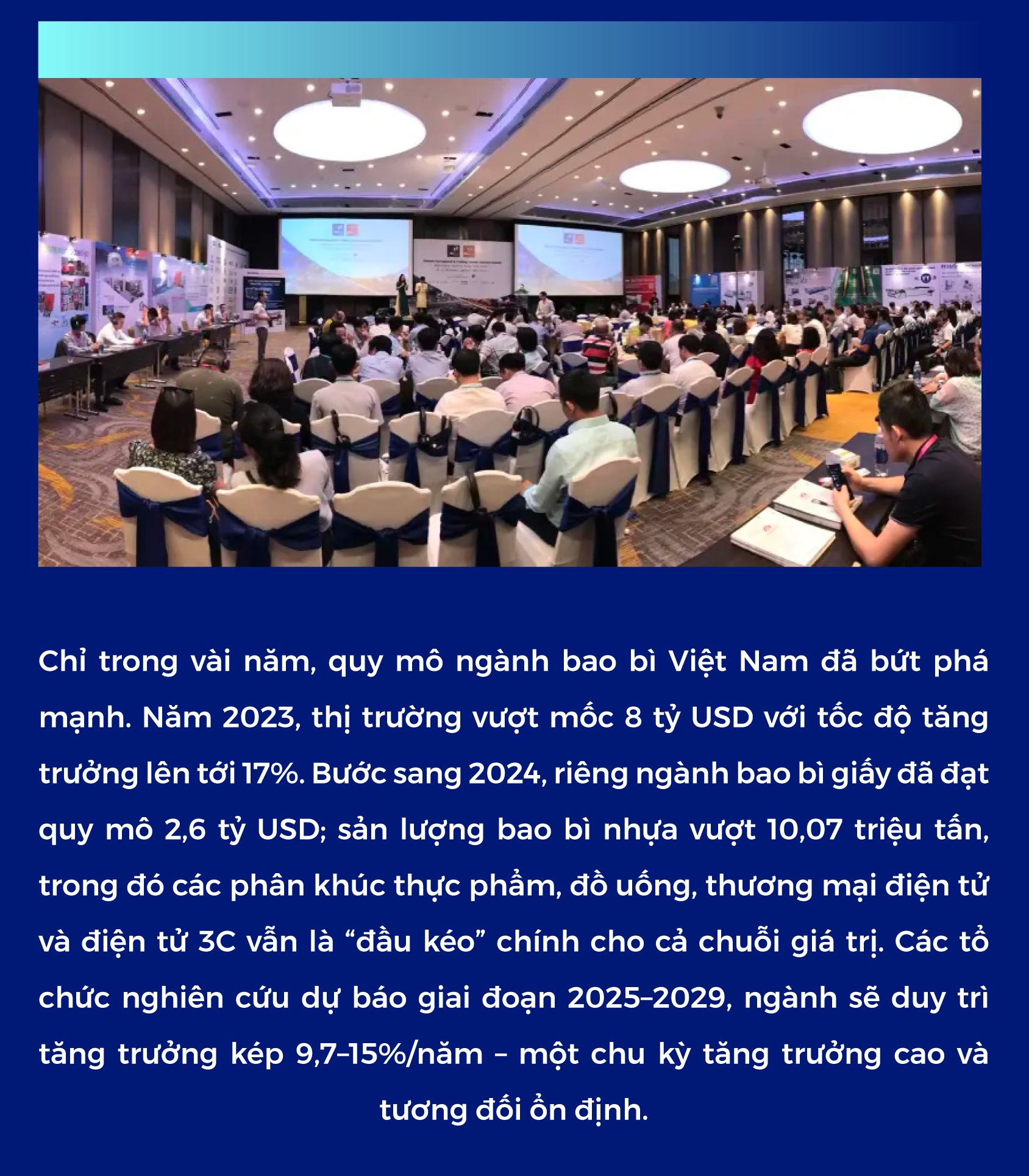 Đằng sau những con số là sự thay đổi cấu trúc sâu sắc. Làn sóng FDI từ Trung Quốc, Nhật Bản, Hàn Quốc và các thương hiệu Âu – Mỹ dịch chuyển nhà máy sang Việt Nam đã kéo theo nhu cầu lớn về thùng carton sóng, hộp màu, bao bì giấy thực phẩm, nhãn mác, bao bì cho thương mại điện tử xuyên biên giới. Cùng lúc, thị trường nội địa với hơn 100 triệu dân, tầng lớp trung lưu mở rộng nhanh tạo nên áp lực nâng cấp bao bì về thiết kế, vật liệu và tiêu chuẩn an toàn.