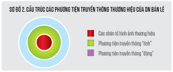 Cũng tương tự như các loại hình DN khác, các phương tiện truyền thông thương hiệu trong bán lẻ bao gồm tất cả các khả năng có sẵn để chuyển tải thông tin và tạo ấn tượng về thương hiệu tới khách hàng. Tất cả các phương tiện này cần được phối hợp sử dụng đồng bộ nhằm đem lại một hình ảnh thống nhất cho thương hiệu cửa hàng và DN bán lẻ. Sơ đồ 2 cho thấy sự sắp xếp các phương tiện này theo hai nhóm phương tiện truyền thông tĩnh và động.